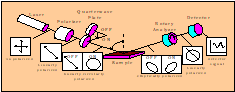 将已知波长的入射光分成线性偏极或圆偏极,照射2003-7-17在待射芯片,利用所得的不同椭圆偏极光的强度讯号,以Fourier分析及Fresnel方程式,求得待测芯片膜厚与折射率的仪器,称为椭圆测厚仪(Ellipsometer)。简单的结构如下图所示: