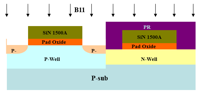在集成电路中,各电晶体彼此间则以场氧化层(FOX)加以隔离的,因为场氧化层上方常有金属导线通过,为了防止金属层,场氧化层,底材硅产生类似NMOS的电容效应,场氧化层下方的区域常掺有掺质浓度很高的P型层,以防止类似NMOS的反转层在场氧化层下发生,而破坏电晶体间的隔离。这层P型层通常称为"ChannelStop",这层掺质是以离子植入(Implantation)的方式完成的,所以称为通道阻绝植入。