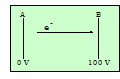 如下图,B比A的电压正l00伏,若在A板上有一电子受B板正电吸引而加速跑到B板,这时电子在B板就比在A板多了100电子伏特的能量。