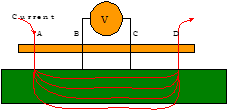 上图ABCD四针,A、D间通以电流I,B、C两针量取电压差(ΔV),则: