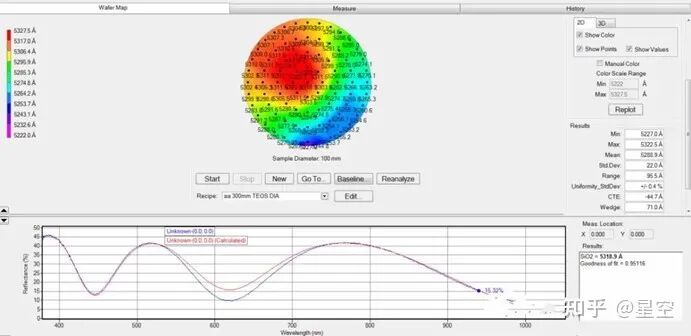 测光刻胶整面膜厚mapping及n、k值(对已知n、k材料,测试速度快,操作简单)。