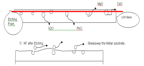 化学蚀刻薄化方式都利用玻璃与化学溶液(HF)产生化学反应(行成“四氟化硅”SiF4),加上不同物理作用来达到面板薄化目的。