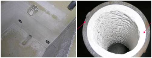 2、装置大型,外围产生沉淀物,白色粉沫。