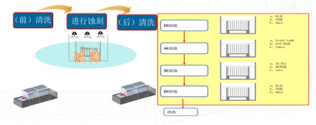 目前薄化工艺主要分为三个阶段:1、封胶工艺2、蚀刻减薄工艺3、研磨工艺